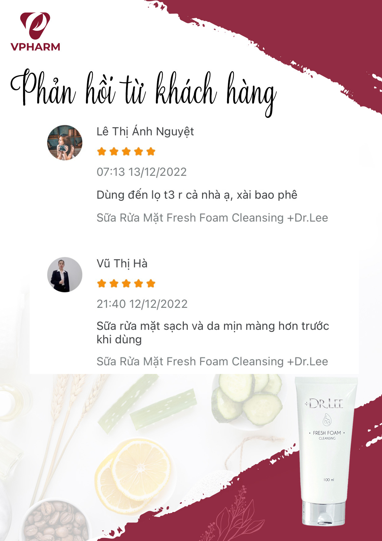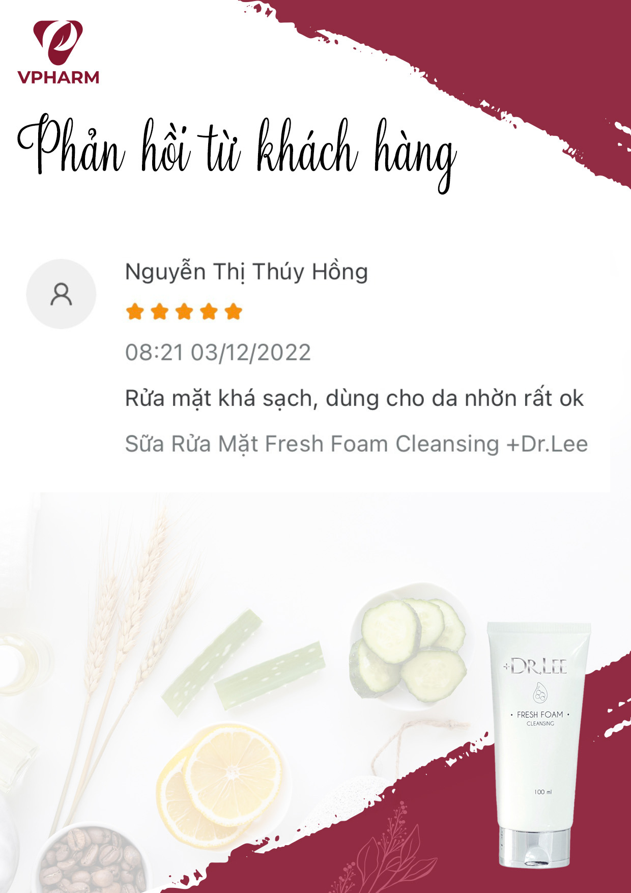 Sữa rửa mặt +Dr.lee Fresh Foam Cleansing 100 ml là sản phẩm chăm sóc da chuyên sâu đến từ dòng mỹ phẩm +Dr.lee hỗ trợ làm sạch sâu, giúp loại bỏ bụi bẩn dầu thừa, kiểm soát da dầu nhờn, se khít lỗ chân lông đem lại làn da bóng sạch, mịn màng và tràn đầy sức sống.