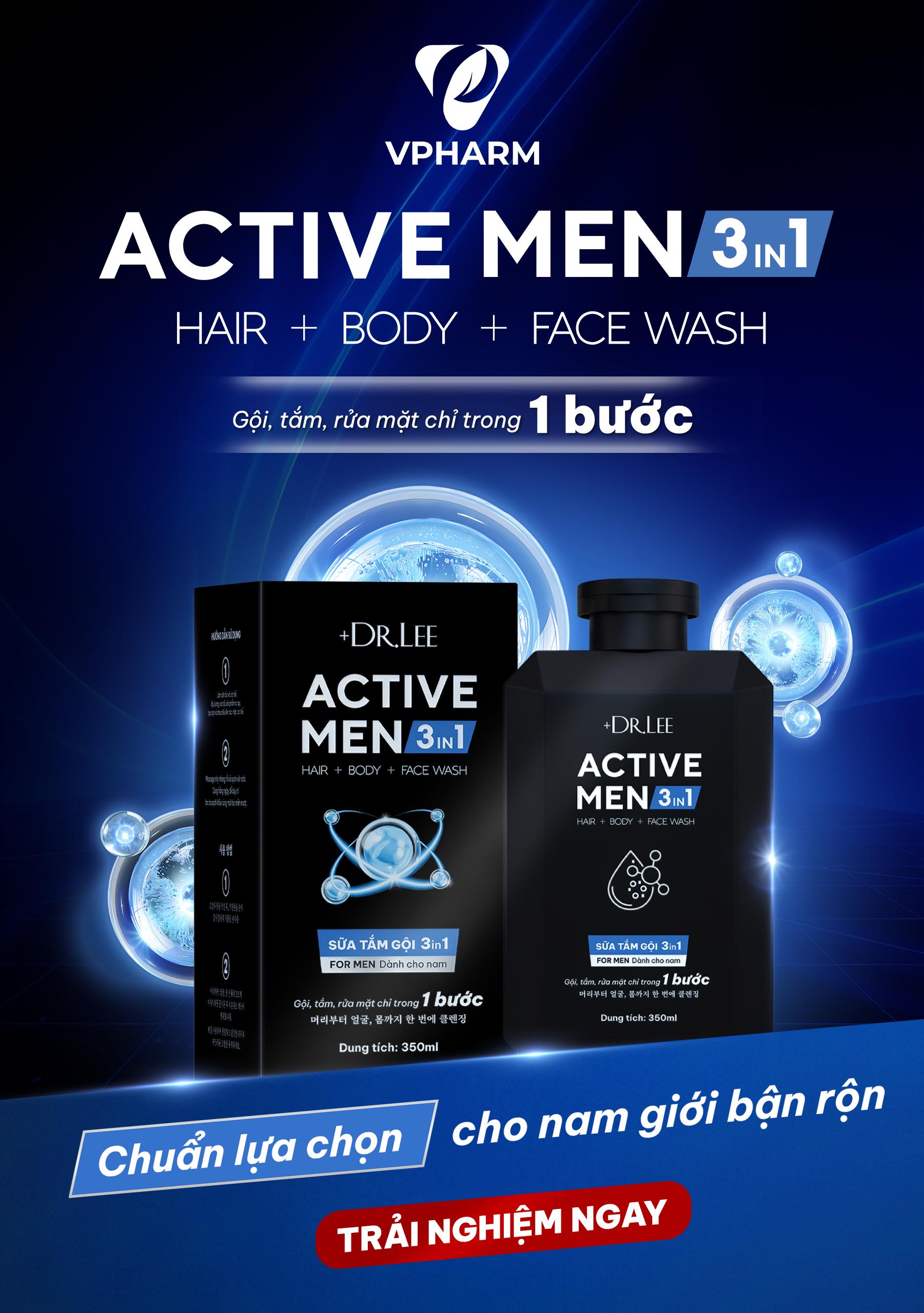 Sữa Tắm Gội Rửa Mặt Nam +Dr.Lee Active Men 3in1 chính là giải pháp All-in-one không thể thiếu, giúp tối giản quy trình chăm sóc da và tóc cho quý ông hiện đại.