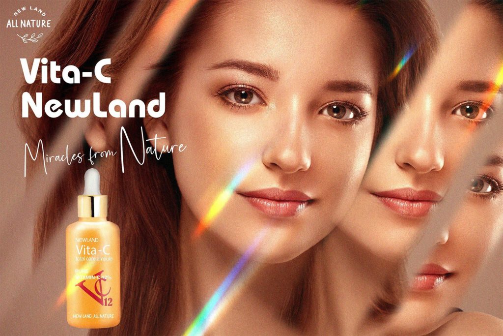 VITA-C NEWLAND mang kết cấu serum mỏng nhẹ, dễ thấm và các hoạt chất Arbutin, Adenosine, Peptide, hàm lượng 12% vitamin tươi nguyên chất & 18 thành phần chiết xuất từ thực vật giúp loại bỏ đi những sắc tố ở trên bề mặt, từ đó cải thiện những đốm nâu và tình trạng da không đều màu, mang lại làn da trắng sáng, khỏe mạnh hơn.